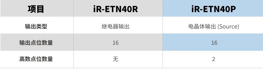 總體來說,iR-ETN40R 與iR-ETN40P主要差異僅為輸出的配置,如下表整理: