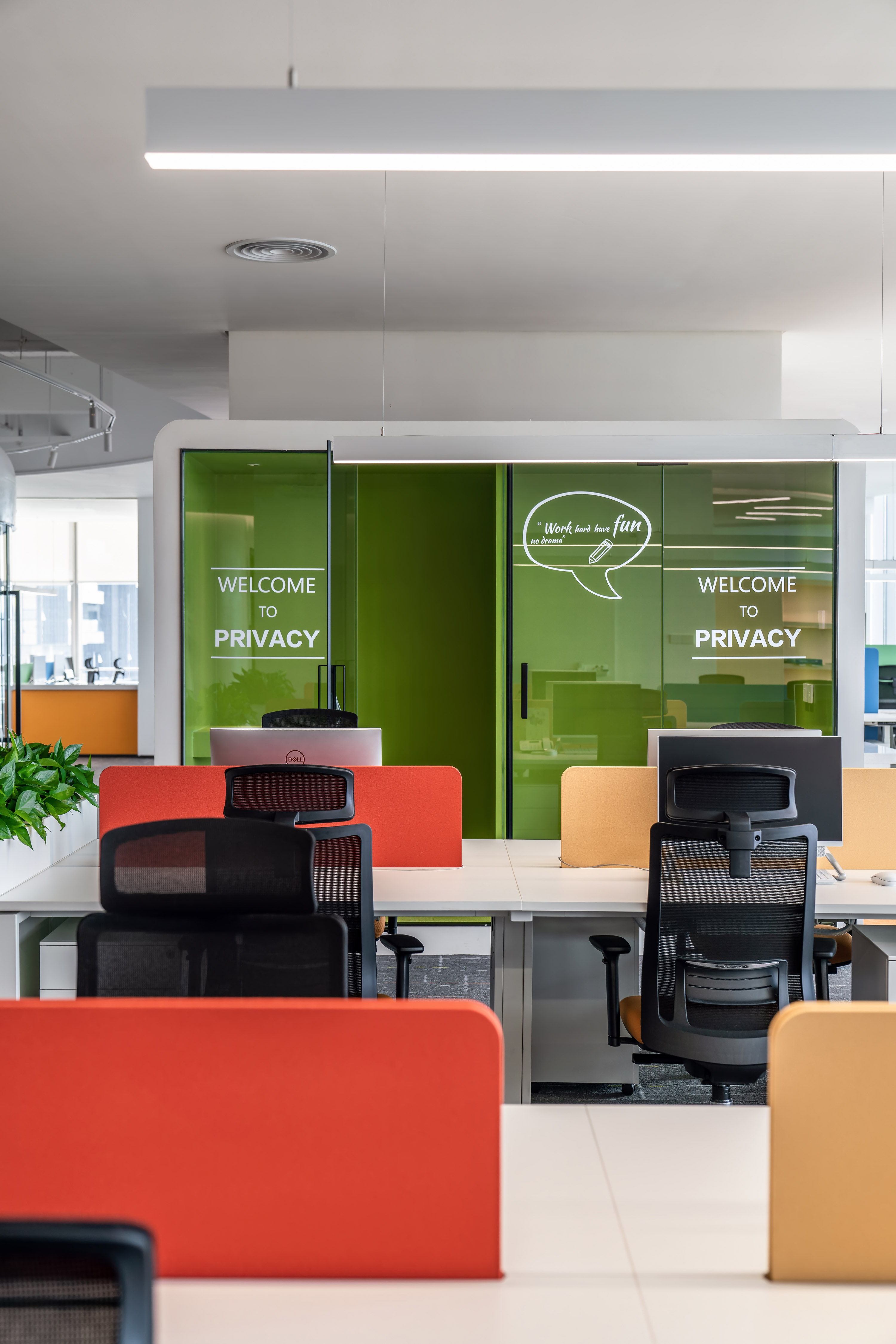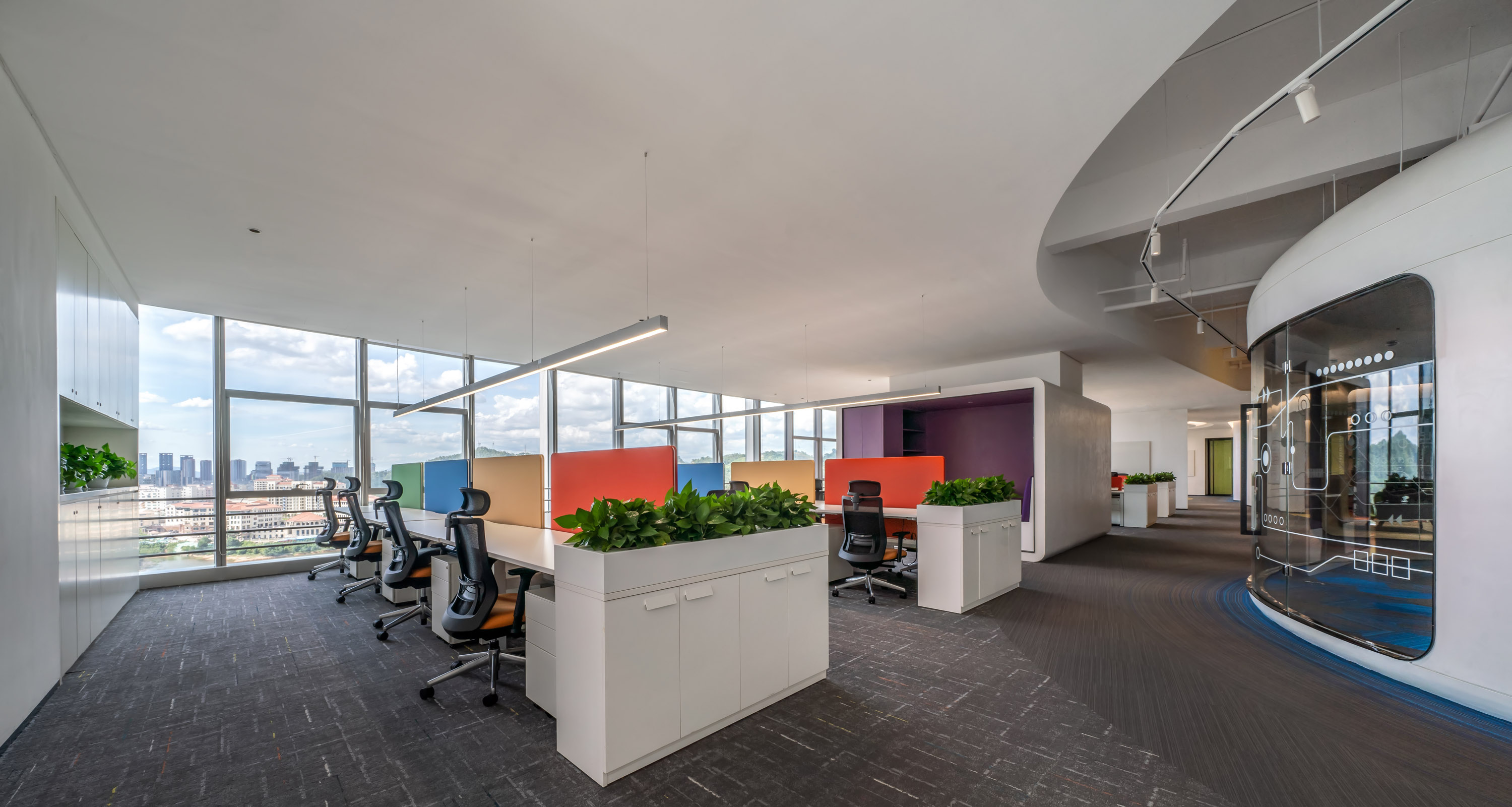 最好的都要留給伙伴們,對伙伴們的貼心融入到辦公室的每個細節。最好的景觀、最優的采光、通風透氣、冷氣口的出風角度設計,都用心至極,把伙伴當家人一樣。包括窗簾的選擇,為了不讓伙伴們在封閉的空間工作,我們對窗簾的嚴選要求既遮陽又透光,視野開闊,讓成員在工作之余可以與窗外風景互動,在緊張的工作中得到舒壓減壓的目的。